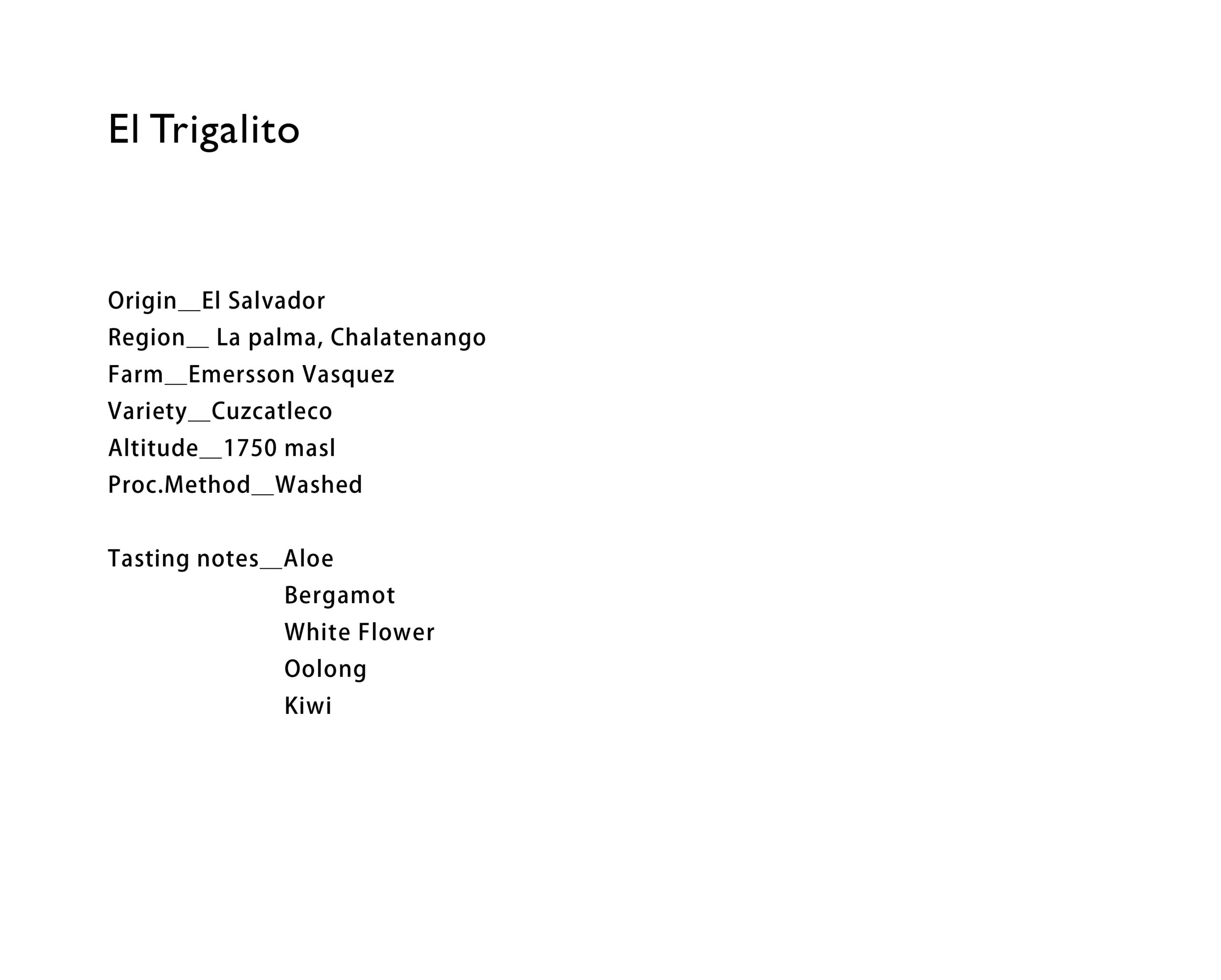 フレーバープロファイル_アロエ、ベルガモット、白い花、烏龍、キウイA coffee producer cultivating in the quiet area of San Fernando, La Palma, near the Honduran border. Currently growing Pacamara, Geisha, and Cuscatleco varieties.